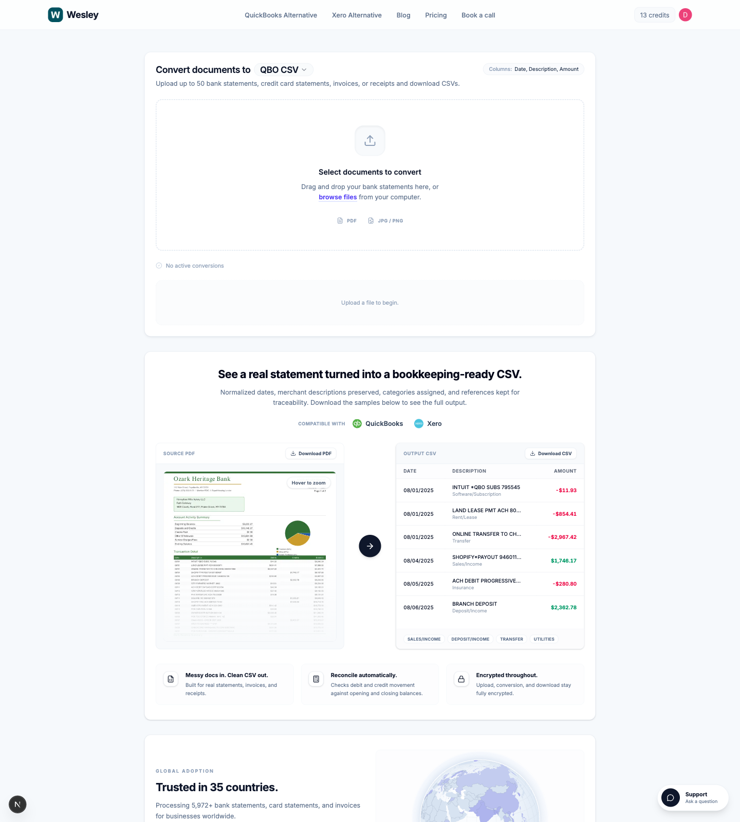 - Output formats that match QuickBooks Online, QuickBooks Desktop, Xero, or a generic CSV.